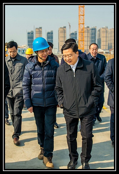 201622日上午1000湖州市市長陳偉俊、吳興區委書記蔡旭昶、區長吳智勇、常務副區長周建新、湖州住房和城鄉建設局局長李全明、市住建局建筑業處處長王躍暉等一行領導慰問了我公司承建的湖州市愛山小學教育集團高新校區工程的建設者。我公司集團董事局主席楊虎麟、副總經理印培榮、楊毛興等領導陪同參加慰問。