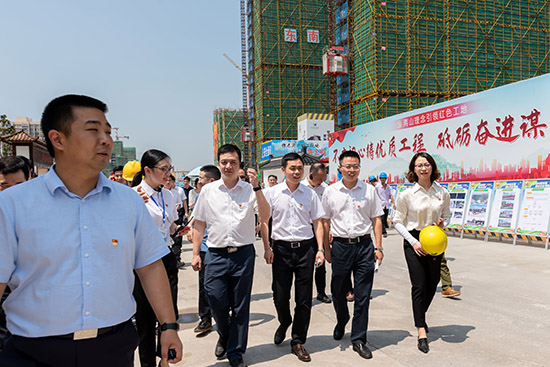 為深化“紅色工地”創(chuàng)建工作,發(fā)揮黨建引領(lǐng)工作效應(yīng),6月30日下午, 市委組織部副部長沈秋,市委組織部部務(wù)會(huì)議成員、市委兩新工委專職副書記鄒冬輝,市建設(shè)局黨委委員、副局長陳明法及各區(qū)縣有關(guān)領(lǐng)導(dǎo)50余人來到由天力集團(tuán)承建的市北32號(hào)地塊,實(shí)地考察“紅色工地”建設(shè)情況,集團(tuán)公司總裁楊勇、副總裁印培榮陪同考察。
