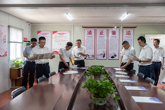考察組一行實(shí)地參觀了黨建活動(dòng)室、黨員活動(dòng)室、紅色文化走廊等,聽取了關(guān)于32號(hào)地塊“紅色工地”的創(chuàng)建工作經(jīng)驗(yàn)介紹,并駐足觀看“紅色工地”建設(shè)宣傳片。考察組詳細(xì)了解了項(xiàng)目黨支部在黨建管理模式及文明施工、質(zhì)量安全、技術(shù)創(chuàng)新上取得的成效,對(duì)市北32號(hào)地塊項(xiàng)目“紅色工地”黨建工作帶動(dòng)項(xiàng)目高質(zhì)量發(fā)展表示充分肯定,并希望項(xiàng)目要充分發(fā)揮工地黨建工作的引領(lǐng)作用和黨員的示范作用,大力提升建筑業(yè)企業(yè)精神文明建設(shè)整體水平。