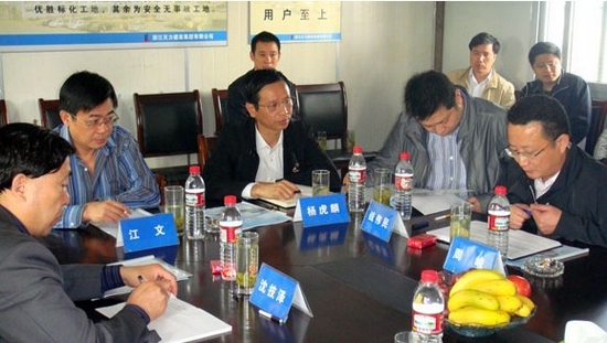 2009年4月22日市常委、市紀(jì)委王敏奇書記,市紀(jì)委何國富副書記蒞臨由我公司承建的北白魚潭“三房”工程召開了現(xiàn)場協(xié)調(diào)會,并召集了市規(guī)劃建設(shè)局、電力局、國土資源局、消防支隊(duì)、吳興區(qū)公安分局、環(huán)渚鄉(xiāng)政府、民生公司、中房公司、豐樹置業(yè)有限公司等有關(guān)單位領(lǐng)導(dǎo),檢查了“三房”工程的進(jìn)展情況,對工程前期的進(jìn)展表示滿意,針對存在的問題提出了要求,現(xiàn)場解決了土地征用等問題,與電力、消防、公安等部門存在問題指出了協(xié)調(diào)、解決辦法,并提出了四項(xiàng)要求:確保進(jìn)度、確保安全、確保質(zhì)量、確保廉潔。