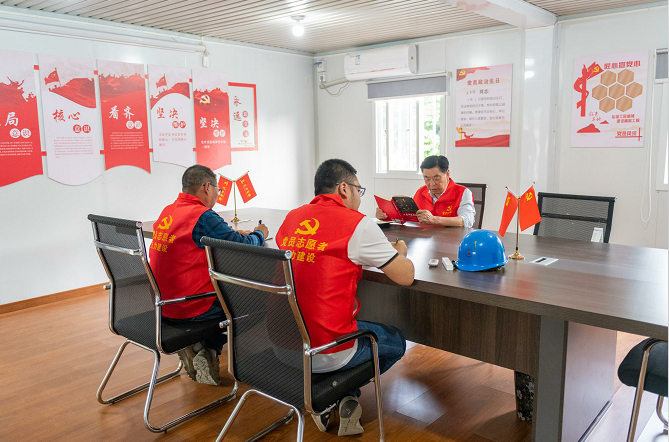 黨建進工地,是將項目黨建工作轉化為強大生產力,促進現場管理水平不斷提升。吳興區(qū)中醫(yī)院項目將黨建工作與工程建設、團隊建設共謀劃、同推進,帶動工友加強黨章黨規(guī)黨紀學習,增強了工地員工的整體綜合素質,為項目順利推進提供了有力的組織保障,確保項目優(yōu)質高效完成。